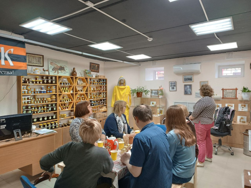 Экскурсия прошла в теплой атмосфере, за чашкой горячего травяного чая. Библиотекари с удовольствием слушали рассказы о жизни пчел, о разных видах меда, о технологиях пчеловодства и о роли меда в истории и культуре.